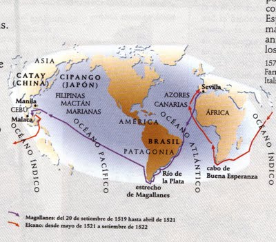 Los viajes de Magallanes, incluyendo lo que hoy son las islas de Filipinas.
