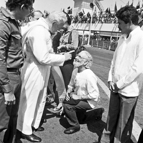 Famosa imagen del Papa Juan Pablo II reprochando a Ernesto Cardenal a su llegada a Nicaragua en 1983.