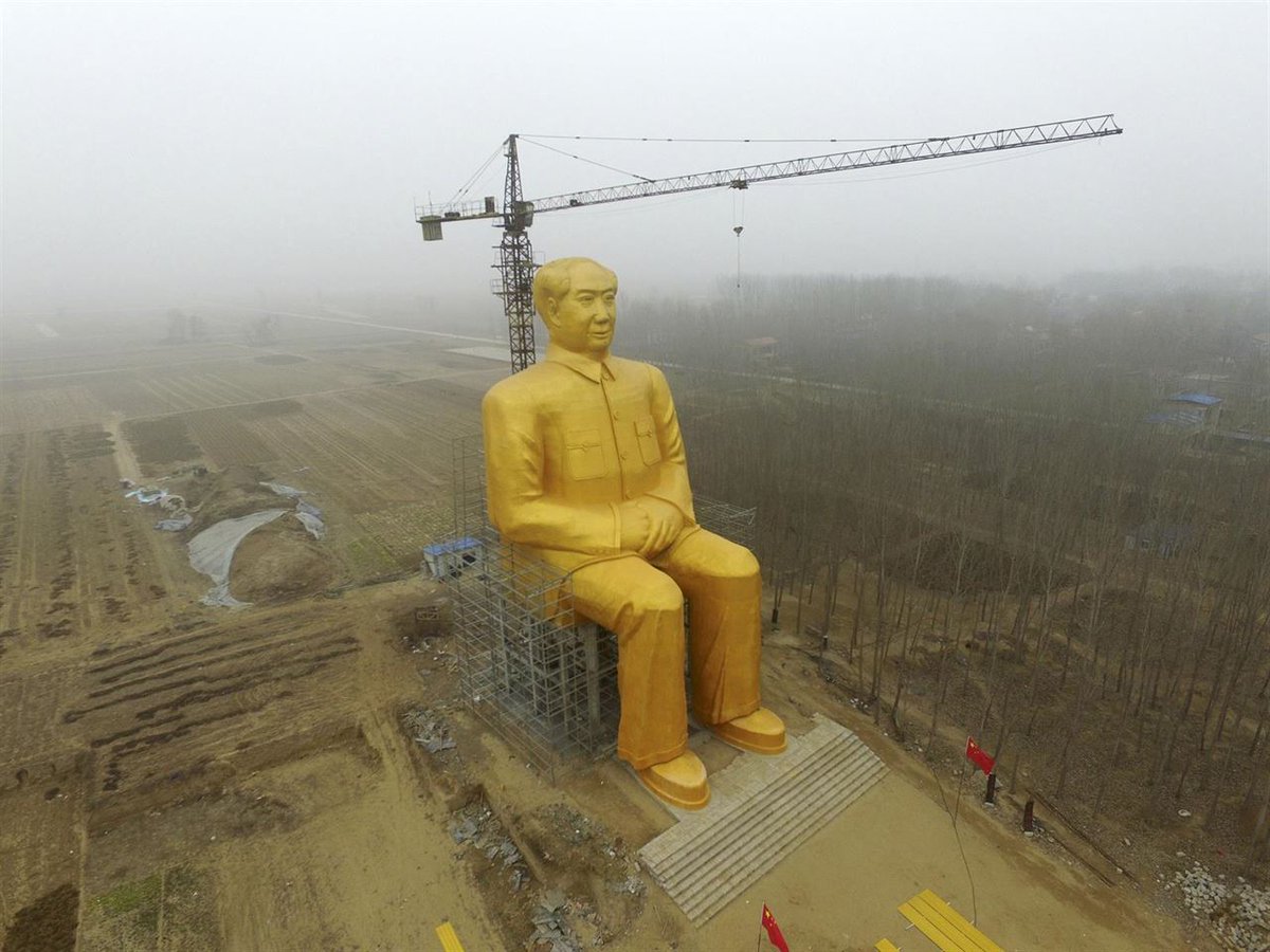 En enero de 2016 fueron divulgadas las fotografías de una estatua de Mao Tse Tung, de 37 metros de alto y bañada en oro, erigida su provincia natal de Henan. Según agencias oficiales chinas el monumento fue financiado por un grupo de empresarios y construido por campesinos que aun idolatran al hombre que en 1949 instauró el comunismo en China.