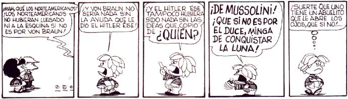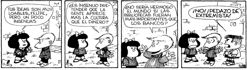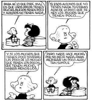 Falleció el padre de Mafalda y, me pregunto si ella ya estará jubilada de la ONU o algún organismo internacional en el cual se esforzó por buscar paz y alimento para la humanidad concluyendo que esos “simpáticos inoperantes” ya ni siquiera son simpáticos pero siguen siendo inoperantes.
