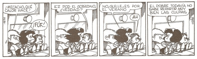 Y Guille, que le preguntaba a Mafalda si el calor que hacía un día era culpa del gobierno ahora dirá que predijo la responsabilidad de dirigentes por el cambio climático.