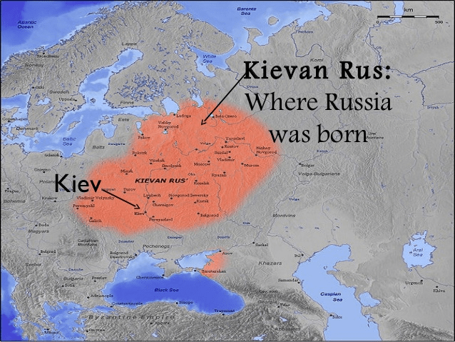 Esta versión tergiversada de la historia niega la existencia de la Rus de Kiv (los ucranianos instan a que ahora la denominemos así puesto que ¨Kiev¨ es la forma rusa de pronunciar el nombre de su capital), una federación de tribus eslavas que se conformó en el siglo 9 y que luego tuvo estados soberanos sucesores como el Principado de Nóvgorod.