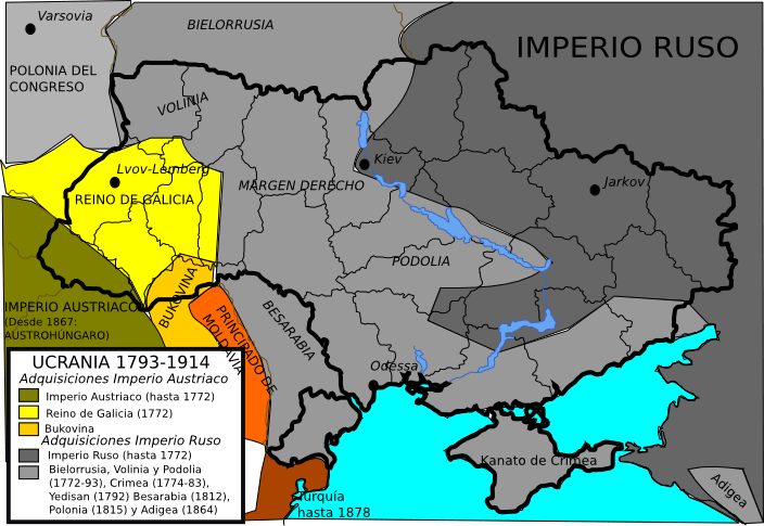 A partir del siglo 13 el Gran Principado de Moscú – surgido después del Rus de Kiv – dominó a Nóvgorod y a partir de entonces, el actual territorio ucraniano fue disputado por varios imperios incluyendo en el siglo 20 , el de la Confederación Lituana-Polaca y los imperios zaristas y soviéticos de Rusia.