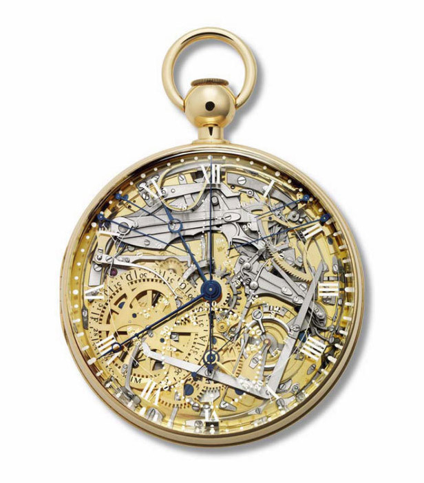 Volvamos al reloj o, mejor dicho, al relojero. Breguet, quien fue un gran inventor, se empeñó en que su obra maestra fuese la que le encargó un admirador de María Antonieta y dedicó buena parte de su tiempo a crear un reloj de bolsillo con muchas innovaciones. Este artefacto se conoció como ¨el Breguet No. 160¨. Sin embargo, la ejecución del encargo se vio interrumpida por la ejecución de María Antonieta durante la Revolución Francesa, dejando la obra inconclusa hasta que su hijo la completó en su nombre.