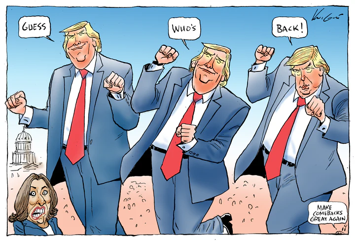 CARICATURA DE MARK KNIGHT. DE LA WEB: https://knightcartoons.com.au/products/trump-is-back-international-political-cartoon