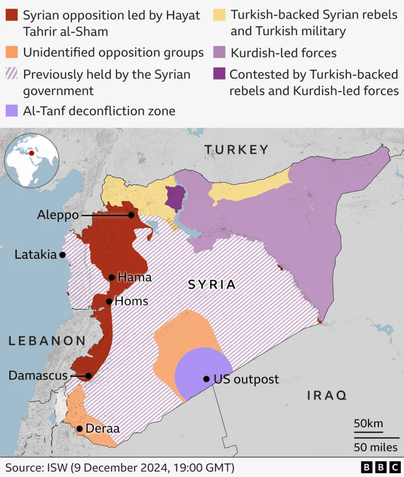 En 2012 Al Qaeda se infiltró en Siria a través de su filial al-Nusra y luego un grupo disidente formó el Estado Islámico (ISIS). La guerra devastó Siria con la participación de aliados de al-Assad como Irán, Hezbolá y Rusia, así como de los islamistas radicales apoyados por Turquía. Por su parte, Estados Unidos y la OTAN brindaron apoyo al grupo étnico no árabe de los kurdos. Ahora, en una sola semana, otro grupo disidente de Al Qaeda, Hayat Tahrir al-Sham, acabó con 53 años de dominio de los al-Assad, una especie de ¨muro de Berlín¨ para los sirios que apenas dan credibilidad a lo ocurrido.