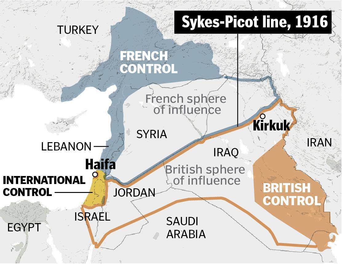 Desde la caída del Imperio Turco Otomano, tras la Primera Gran Guerra (1914-1918), británicos y franceses se repartieron el Medio Oriente y los territorios que hoy conforman los países árabes del norte de África (Magreb). Los nuevos imperios establecieron de manera artificial las fronteras de lo que hoy son Israel, Jordania, Arabia Saudí, Irak, Siria, Líbano y los pequeños feudos del Golfo Pérsico, con excepción de Irán.